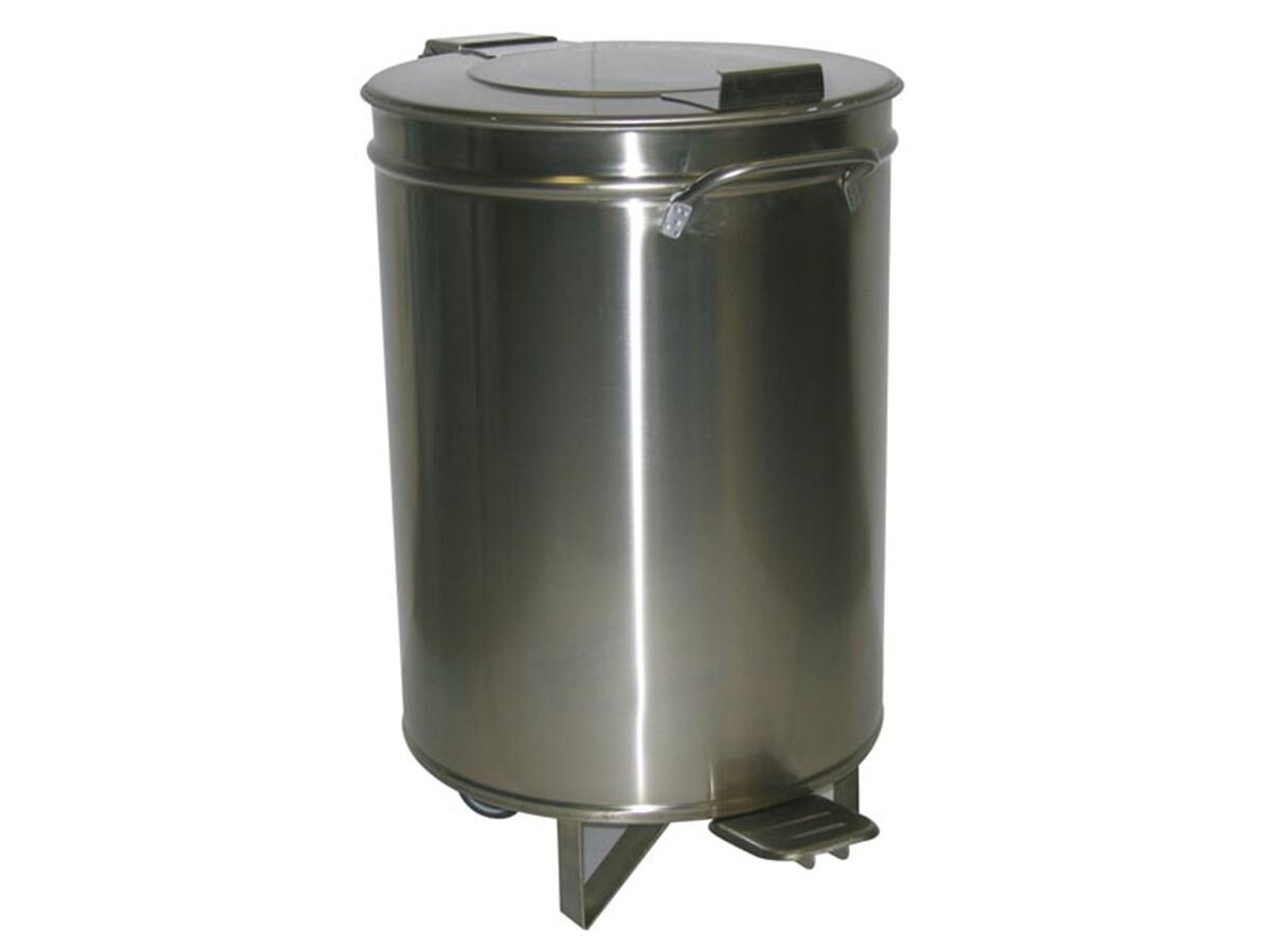 Gastronomie Abfalleimer, 50 Liter, Edelstahl, mit Fusspedal, Hub-Deckel & Rädern