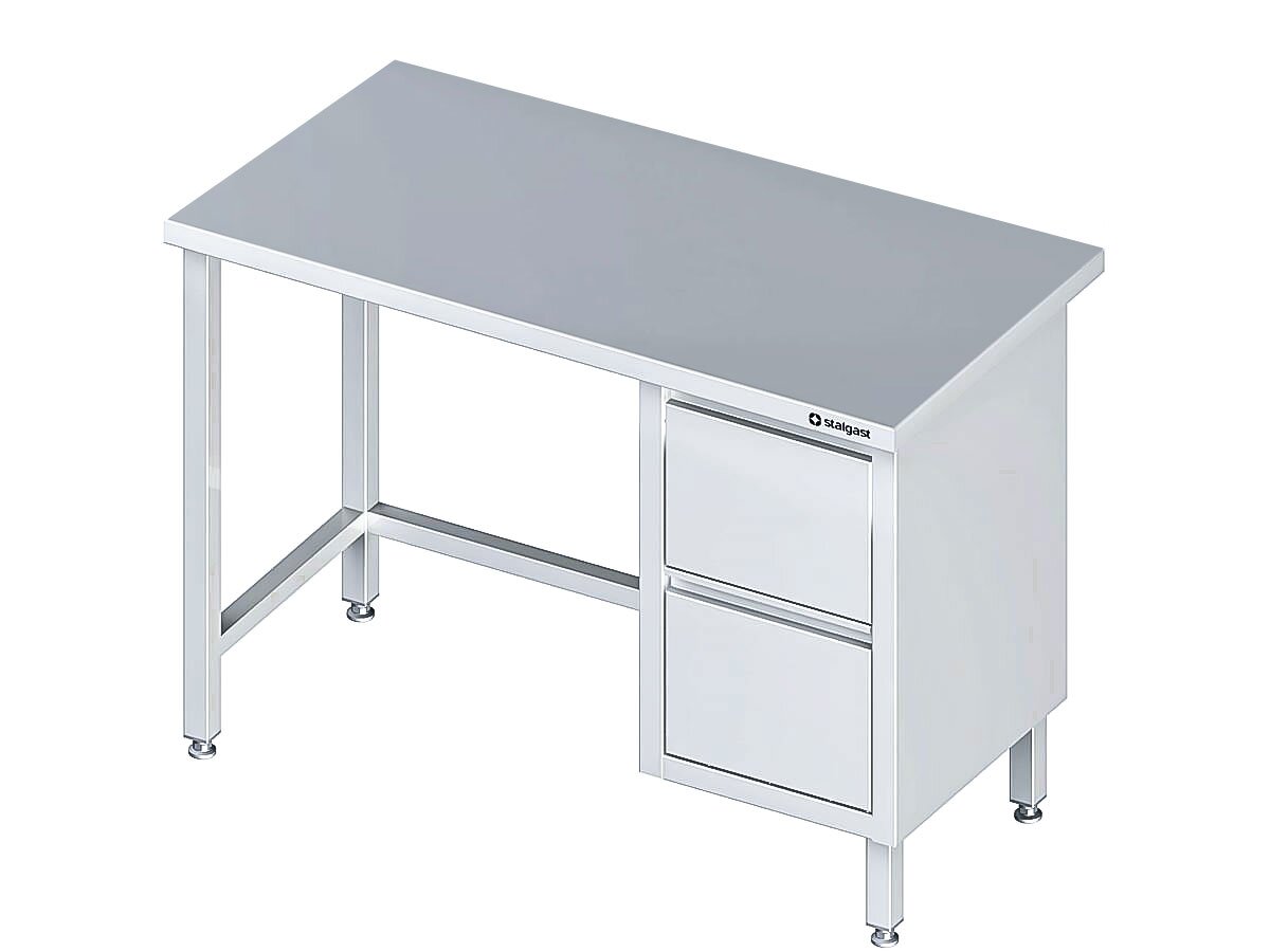Edelstahl Arbeitstisch mit 2er Schubladenblock rechts, Breite 1900 mm