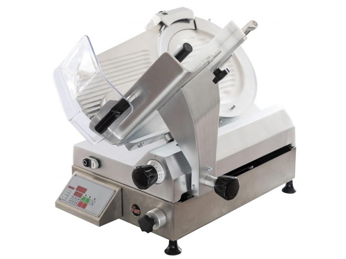 Die Saro Automatische Aufschnittmaschine Modell F-350 ist die ideale Wahl für professionelle Küchen, die Präzision und Effizienz benötigen. Mit einem Klingendurchmesser von 350 mm und einer einstellbaren Schnittstärke von 0 bis 13 mm bietet diese Maschine vielseitige Einsatzmöglichkeiten. Die robuste Konstruktion aus Edelstahl und anodisch oxidierter Aluminiumlegierung sorgt für Langlebigkeit und einfache Reinigung.