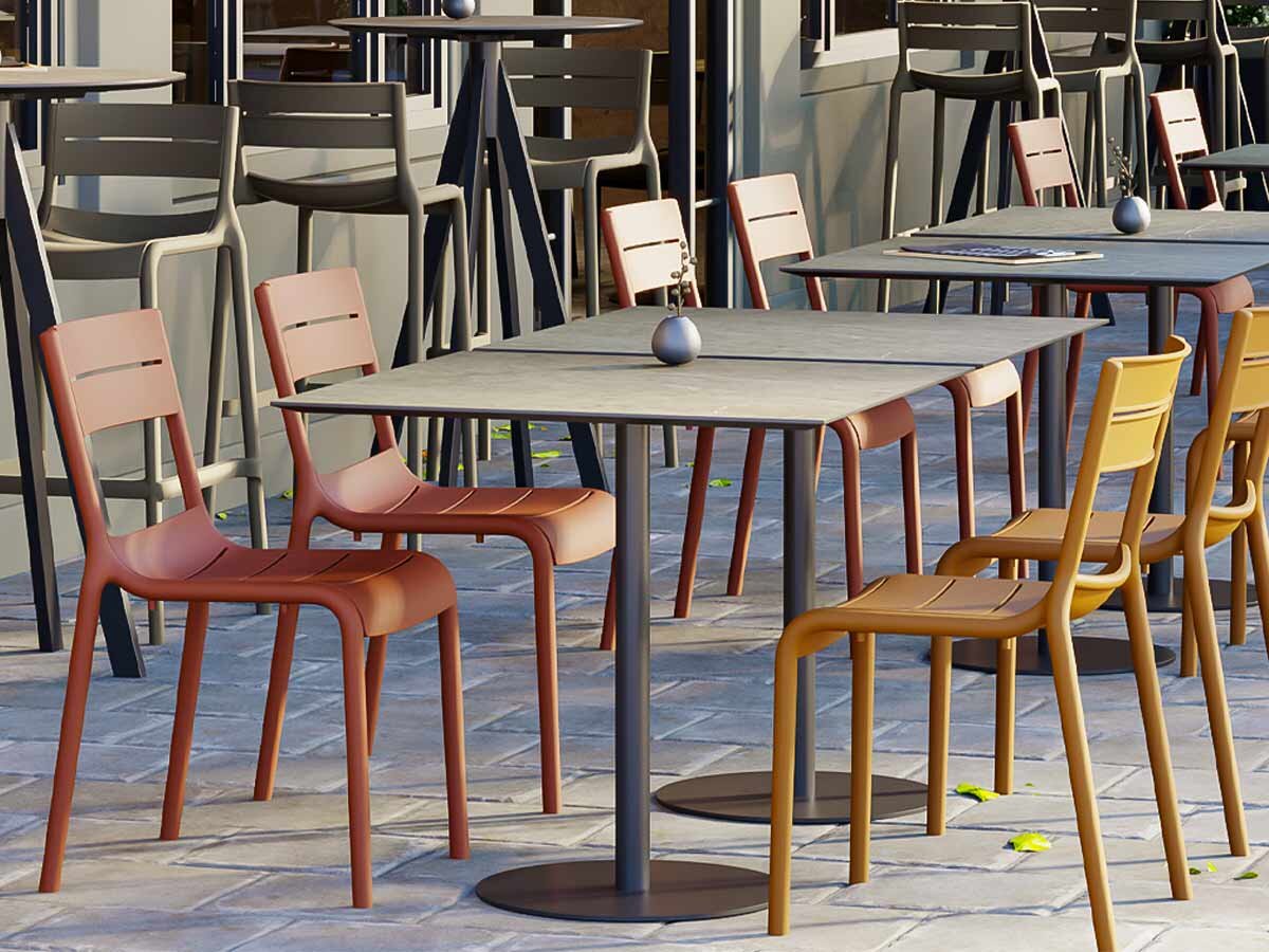 Der Calor Terrassenstuhl ist ein stapelbarer Stuhl aus robustem Polypropylen, der sowohl für den Innen- als auch für den Außenbereich geeignet ist. Der Stuhl ist in 4 modernen Farben erhältlich. Dank seines außenbeständigen Materials und seiner Stapelbarkeit ist dieser Stuhl eine gute Wahl für Restaurants und Gastronomiebetriebe.