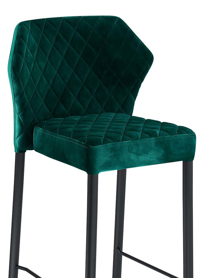 Barhocker Louis mit grünem Velour-Polster, feuerhemmend