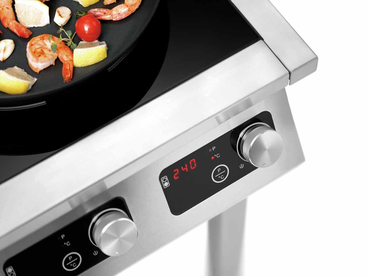 Der Bartscher Induktionskocher 4P 50-1 TCK bietet vier leistungsstarke Induktionskochstellen mit je 5 kW, ideal für die professionelle Gastronomieküche. Ausgestattet mit einer präzisen Touch- und Knebelsteuerung sowie einer digitalen Anzeige, ermöglicht dieser Induktionskocher eine einfache Bedienung und präzise Temperaturregelung von 60°C bis 240°C. Mit Überhitzungsschutz und Topferkennung sorgt der Bartscher Induktionskocher nicht nur für schnelles und effizientes Kochen, sondern auch für maximale Sicherheit in der Küche.