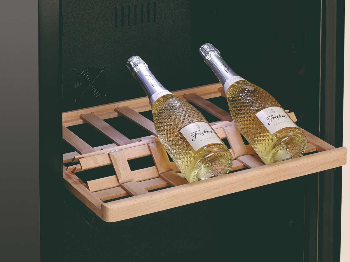 Klappmechanismus ermöglicht horizontale oder im 25°- Winkel aufgestellte Flaschenlage