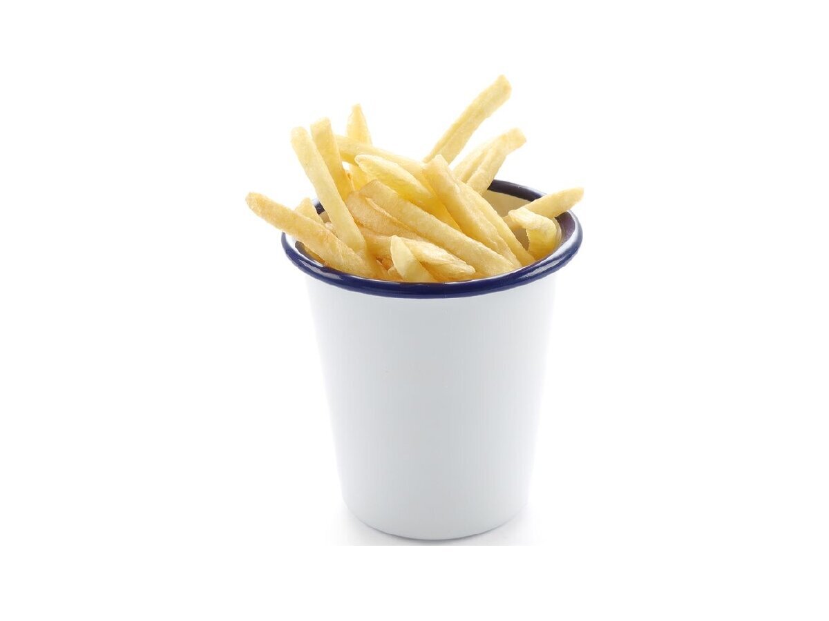 - Weißer emaillierter Stahl mit einem schönen blauen Rand
