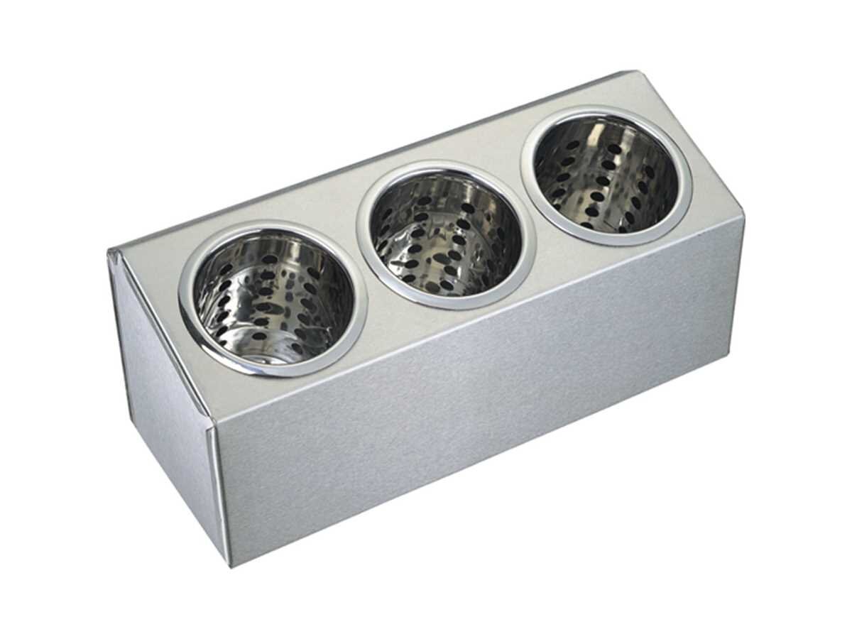 Gastronomie Besteckbehälter aus Edelstahl für 3 Besteckköcher, für drei Besteckköcher