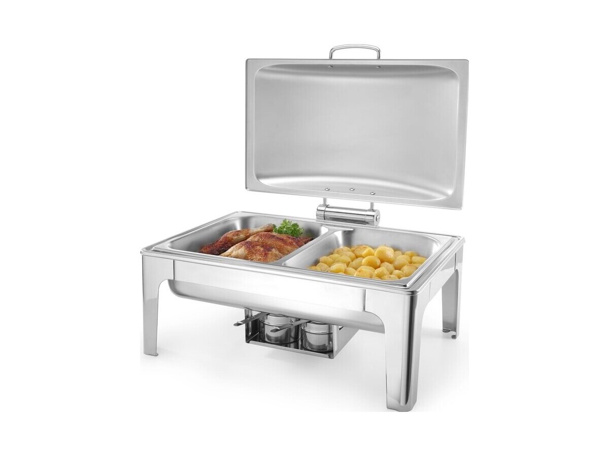 Ideal für Buffets und Catering. Durch die Verwendung von hochwertigen Materialen und dem schönen Finish, eignen sich diese Chafing Dishes zum stilvollen Präsentieren ihrer Speisen. Die Chafing Dishes und das Zubehör sind aus langlebigem Edelstahl gefertigt.