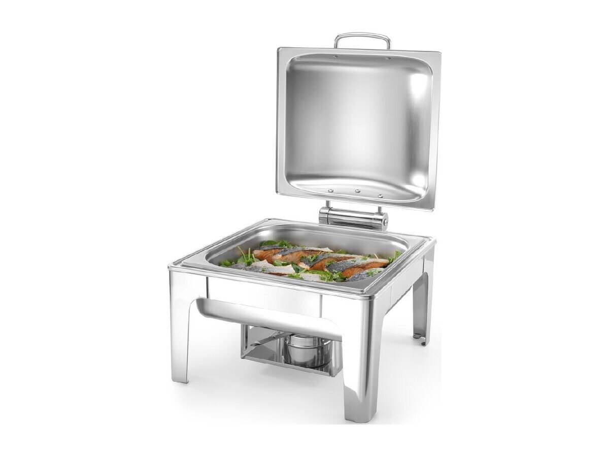 Ideal für Buffets und Catering. Durch die Verwendung von hochwertigen Materialen und dem schönen Finish, eignen sich diese Chafing Dishes zum stilvollen Präsentieren ihrer Speisen. Die Chafing Dishes und das Zubehör sind aus langlebigem Edelstahl gefertigt.
