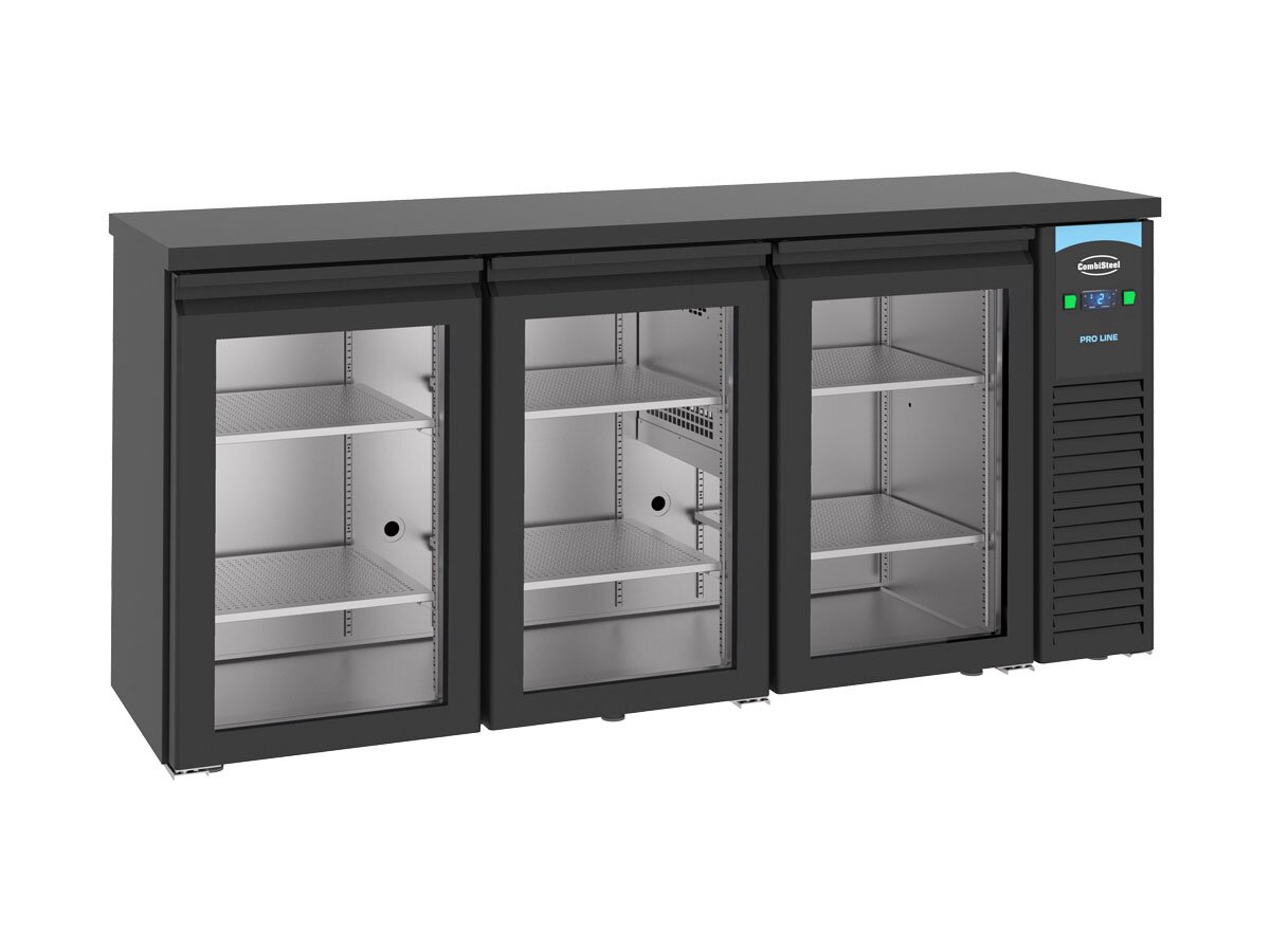 Combisteel Barkühltisch – 500 Liter Fassungsvermögen, Schwarz mit 3 Glastüren