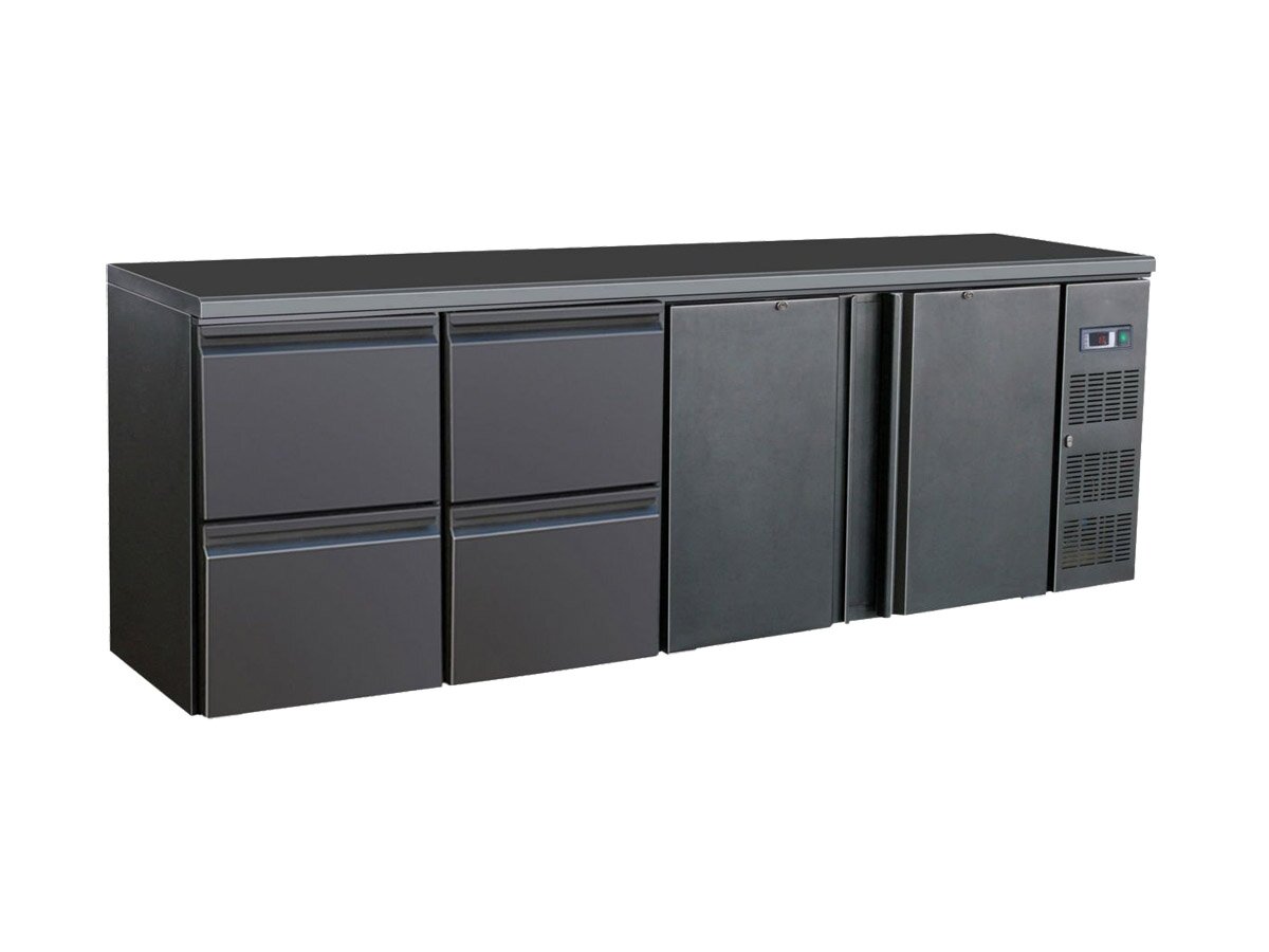 Combisteel Barkühltisch – 698 Liter Fassungsvermögen, Schwarz mit 2 Türen und 4 Schubladen