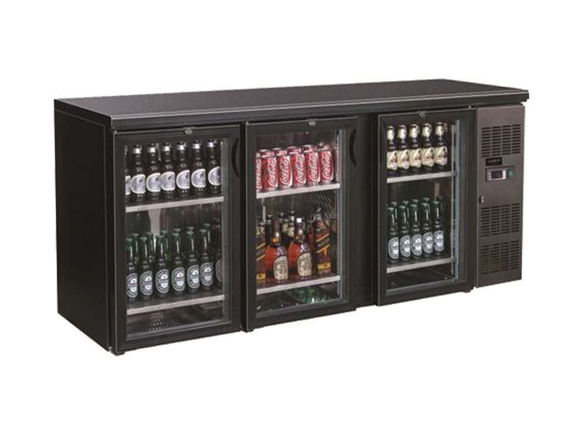Combisteel Barkühltisch – 537 Liter Fassungsvermögen, Schwarz mit 3 Glastüren