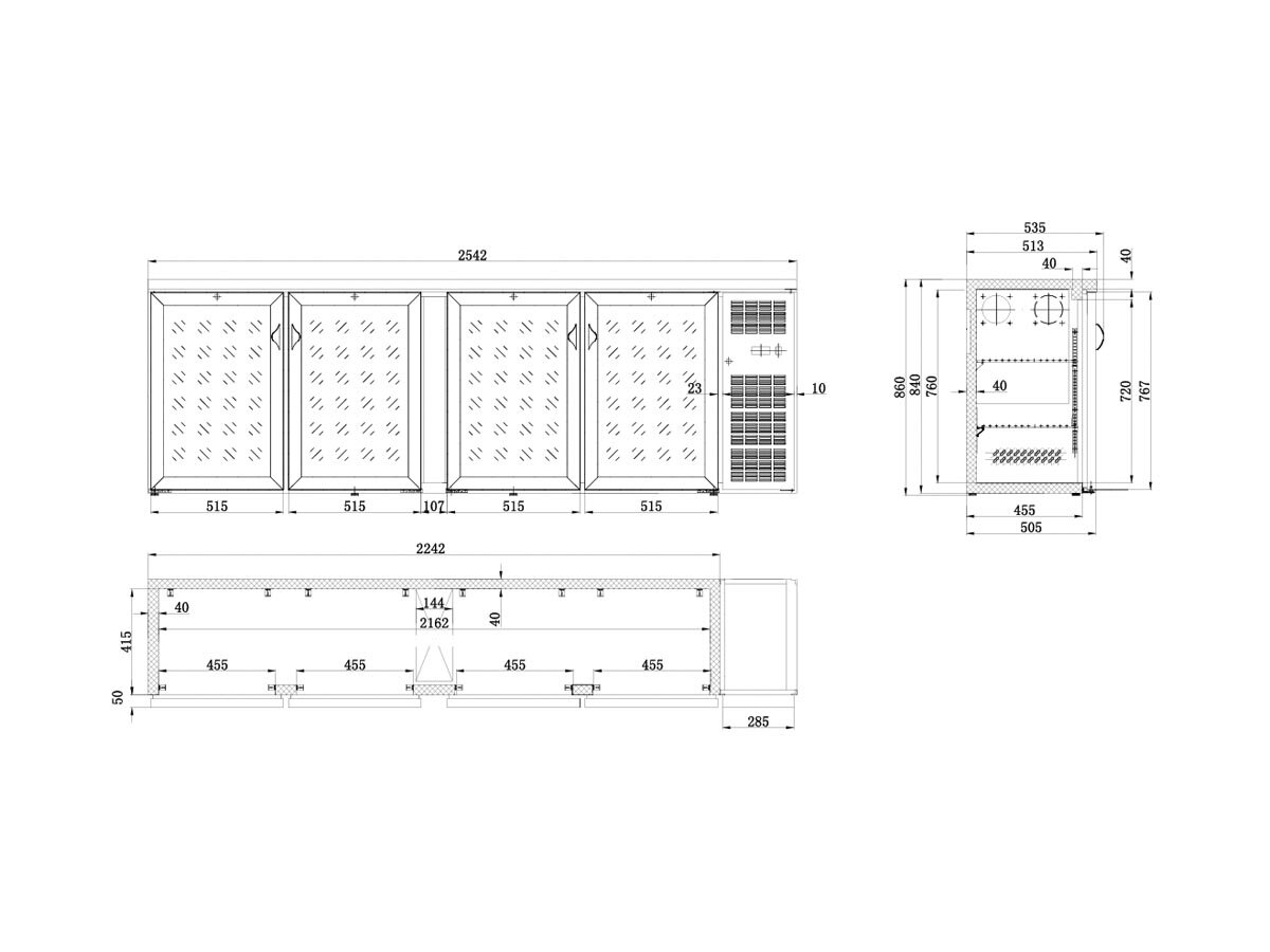 Combisteel Barkühltisch – 698 Liter Fassungsvermögen, Schwarz mit 4 Glastüren