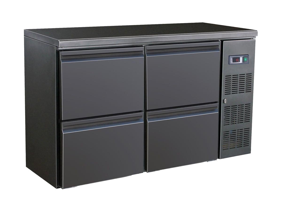 Combisteel Barkühltisch – 350 Liter Fassungsvermögen, Schwarz mit 4 Schubladen