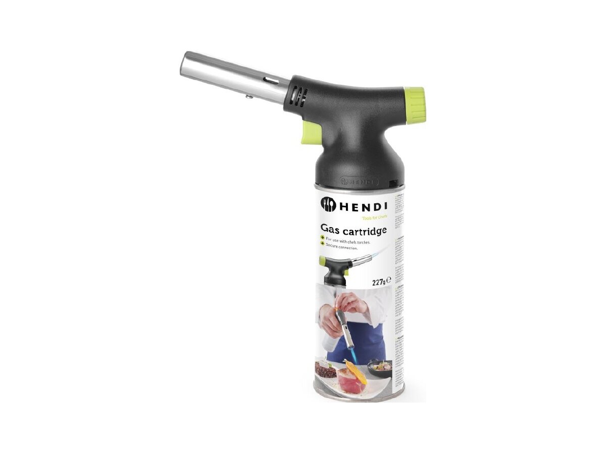 Der Hendi Jet Crème-Brûlée-Brenner im Set mit Kartusche wurde vom renommierten niederländischen Designer Robert Bronwasser entworfen und bietet sowohl Stil als auch Funktionalität. Mit einer einstellbaren Flammengröße von 15 bis 150 mm und einer Piezo-Zündung sorgt der Brenner für gleichmäßige Ergebnisse, sei es beim Karamellisieren von Zucker oder beim Schmelzen von Fleisch und Gemüse. Der ergonomische Griff und das moderne, mattschwarze Design mit grünen Akzenten gewährleisten eine angenehme Handhabung. Der Brenner lässt sich sicher und einfach an der Gaskartusche befestigen und kann in jedem Winkel verwendet werden – sogar kopfüber. Das Set enthält sowohl den Brenner als auch eine Gaskartusche, die bei Bedarf einfach ausgetauscht werden kann (separat erhältlich, Artikelnummer: 29706).