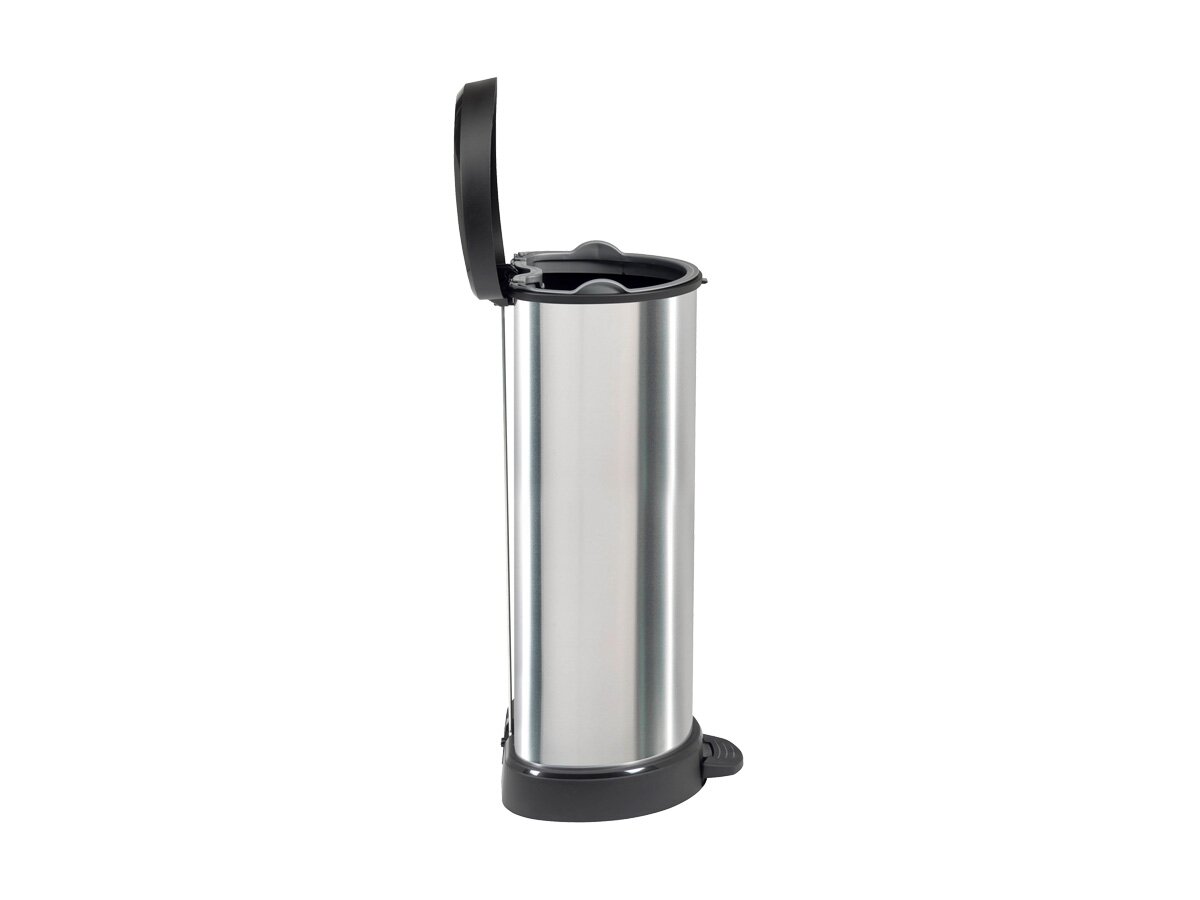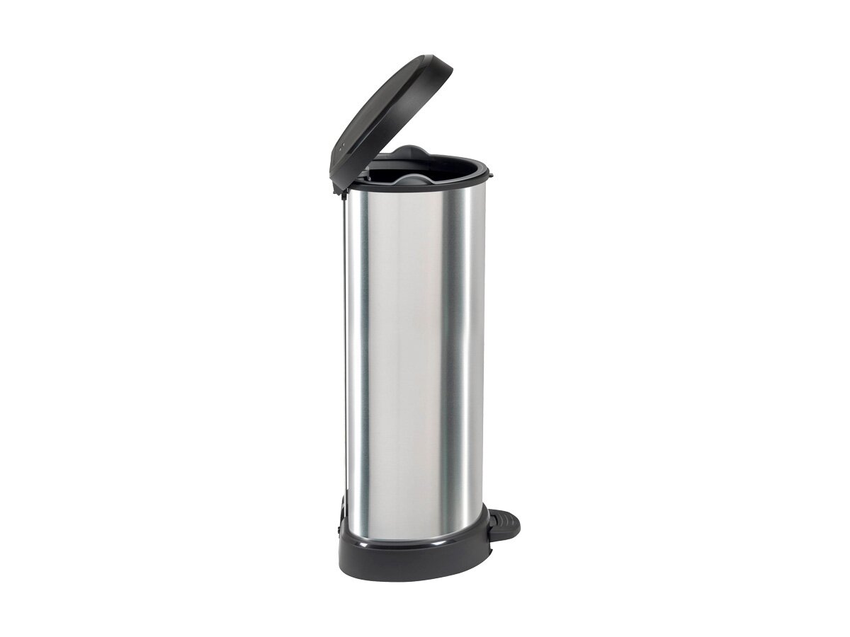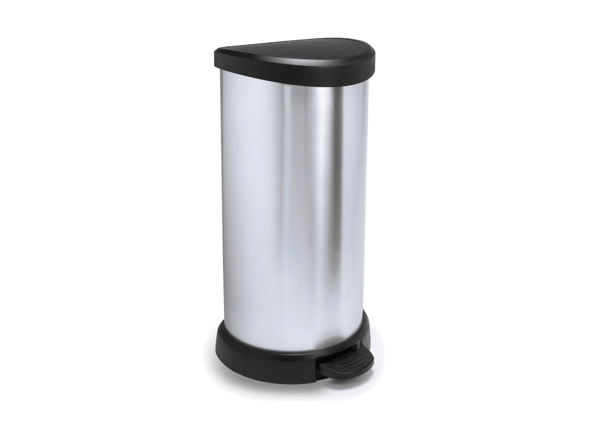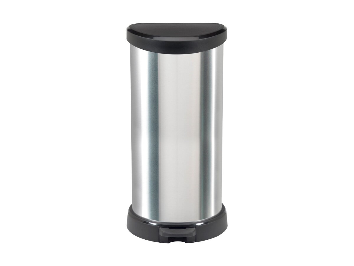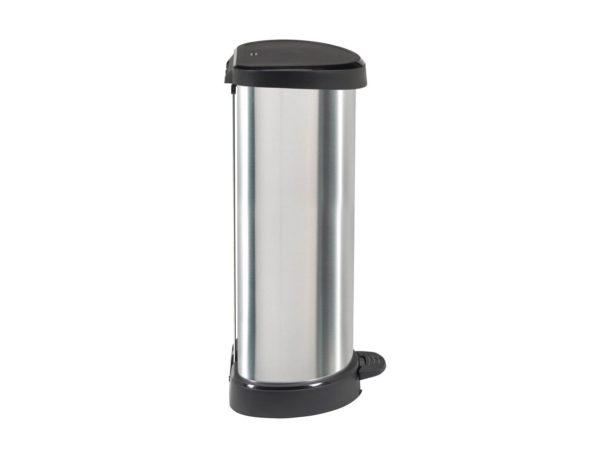 Curver DECOBIN Abfalleimer 40L mit Fußpedal silber metallic, Metalleffekt-Lackierung, Komfortables Pedal , Beutelhalterung