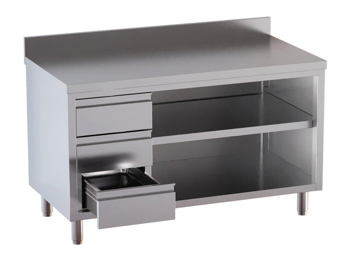 Arbeitsschrank Edelstahl offen, 3 Schubladen links, B: 2000 mm