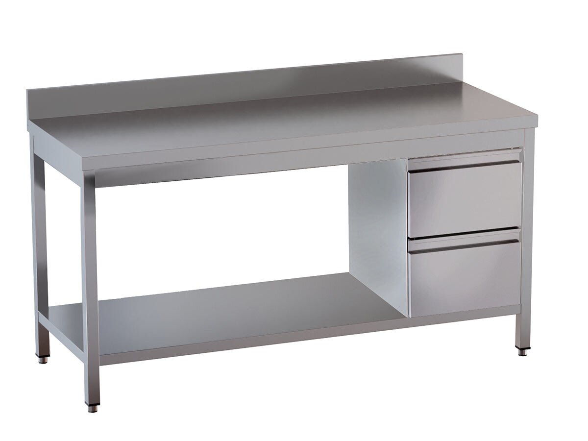 Arbeitstisch Edelstahl, 2 Schubladen, B: 2000 mm