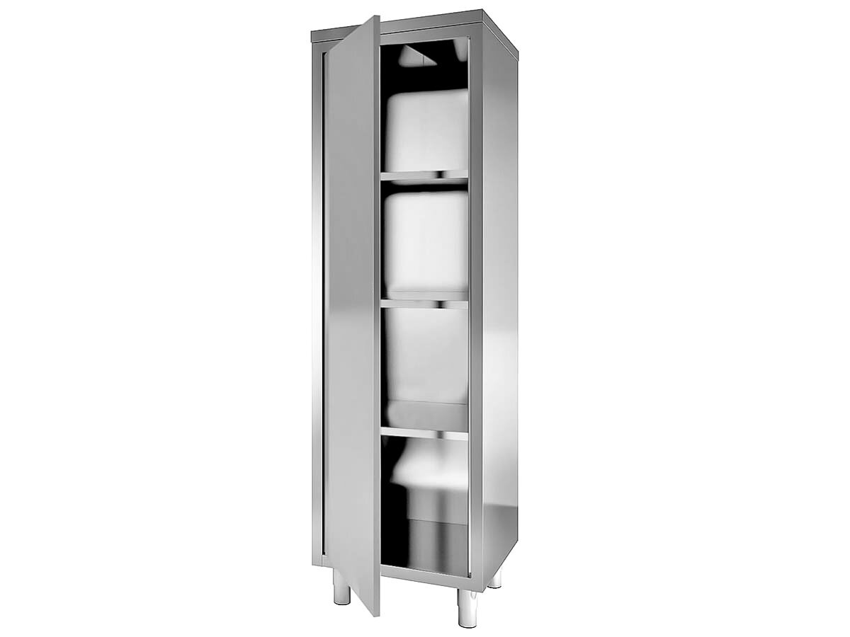 Gastronomie Hochschrank aus Edelstahl mit 1 Flügeltür und 3 Einlegeböden