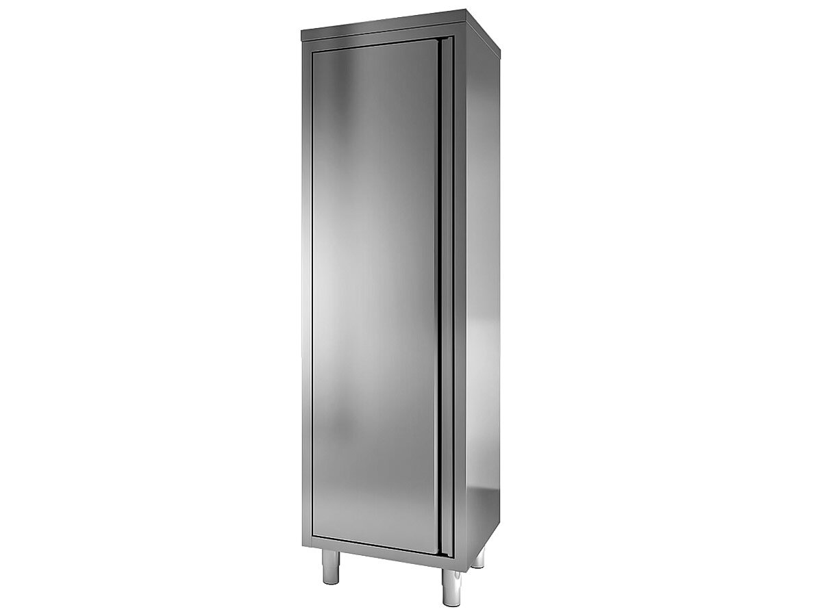 Gastronomie Hochschrank aus Edelstahl mit 1 Flügeltür und 3 Einlegeböden