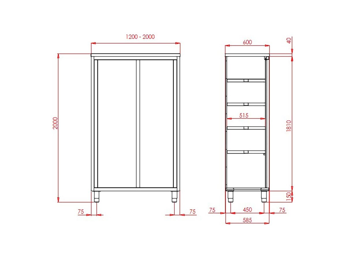 Gastronomie Hochschrank aus Edelstahl mit Schiebetüren und 3 Einlegeböden