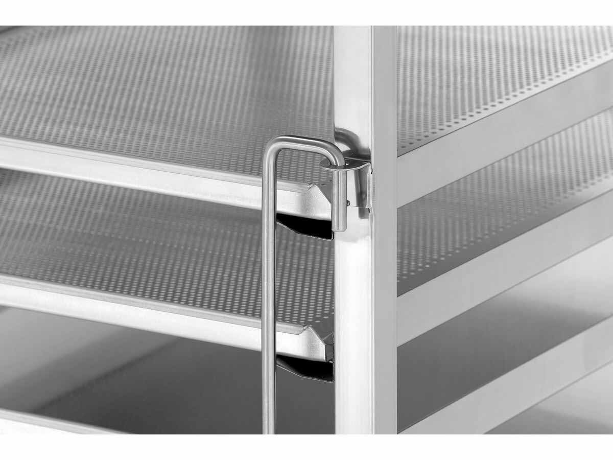 Abräumen im Großformat 600 x 400 – Die beidseitige Behältersicherung ist leicht bedienbar und sorgt für einen sicheren Halt.
