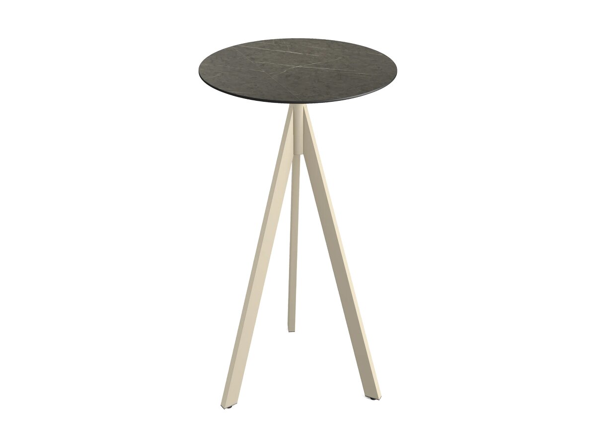 Infinity Tripod Stehtisch Gestell Sand mit Midnight Marble Tischplatte