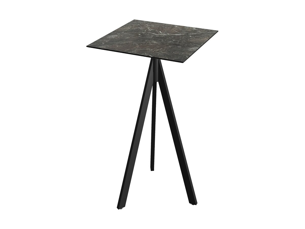 Infinity Tripod Stehtisch Gestell Schwarz mit Galaxy Marble Tischplatte eckig