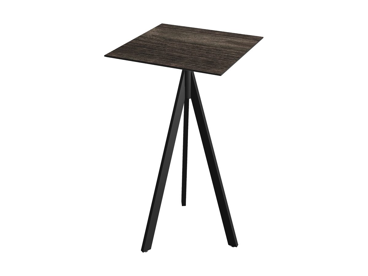 Infinity Tripod Stehtisch Gestell Schwarz mit Riverwashed Wood Tischplatte eckig