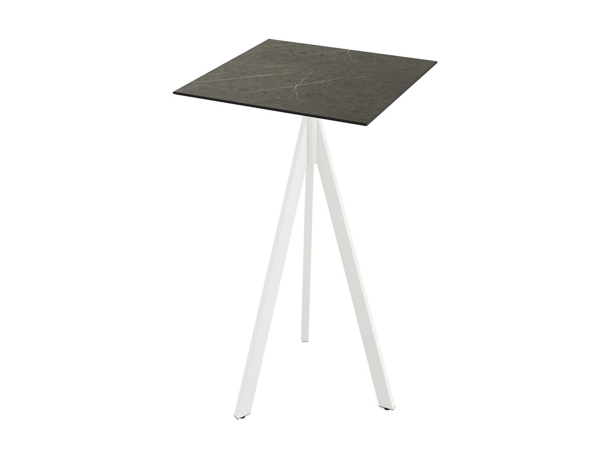 Infinity Tripod Stehtisch Gestell Weiß mit Midnight Marble Tischplatte eckig