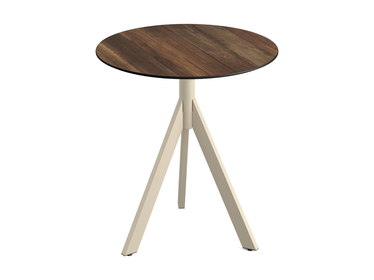 Infinity Tripod Terrassentisch Gestell Sand mit Tropical Wood Tischplatte