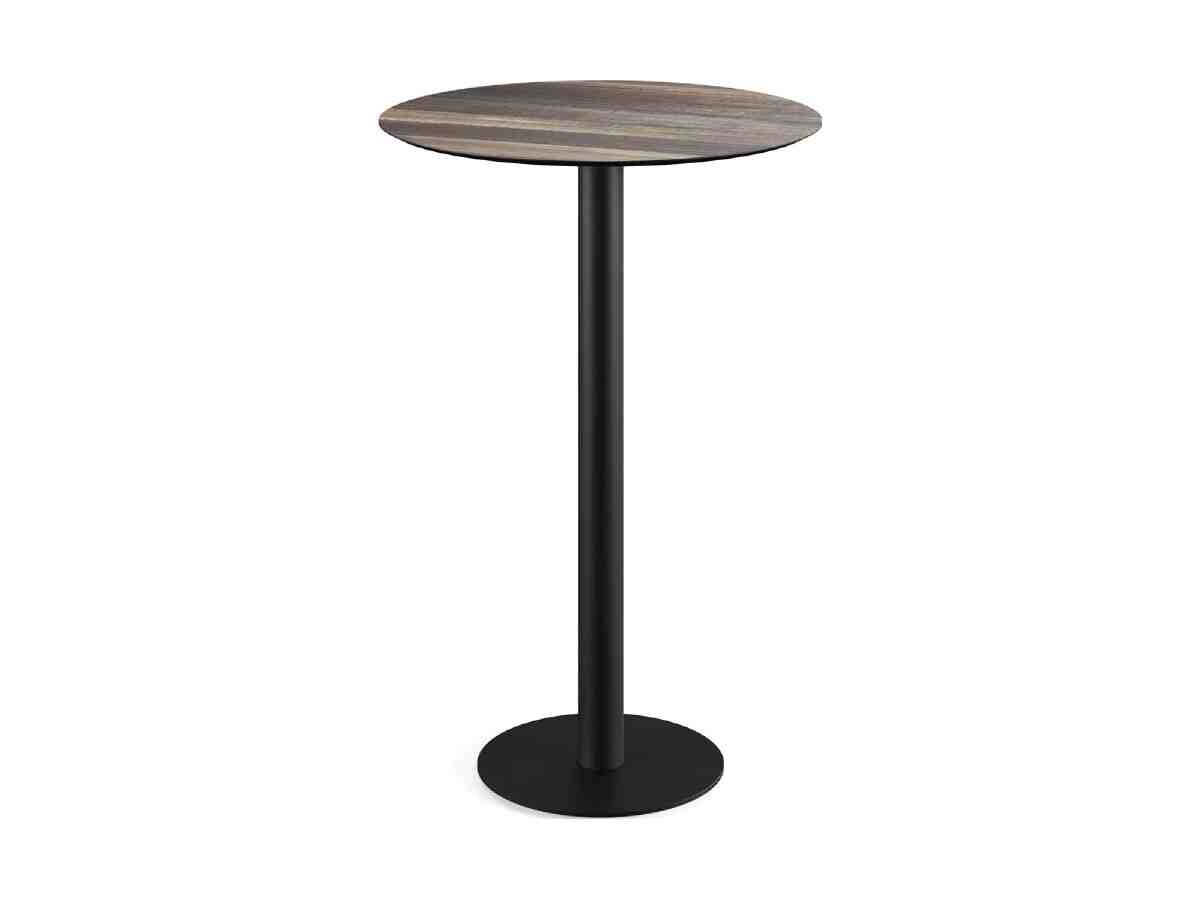 Urban Stehtisch Gestell Schwarz mit Tropical Wood Tischplatte