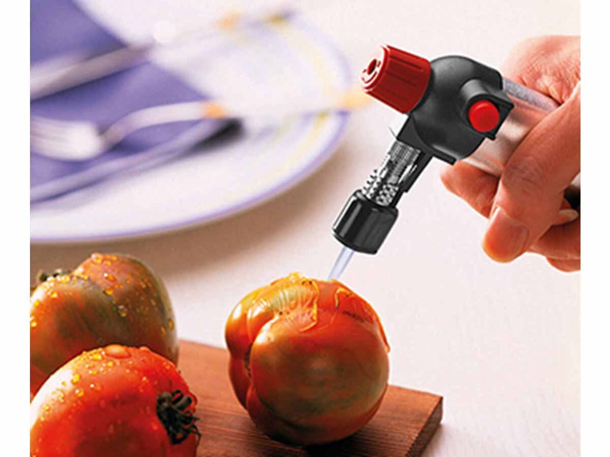 Ob für die Speisenvorbereitung oder Zubereitung, der Küchenhelfer findet bei den verschiedensten Handgriffen Anwendung – Sei es beim Karamelisieren, Käse schmelzen, Tomaten häuten, Nachbräunen und vielem mehr.- Temperaturbereich: bis 1300 °C