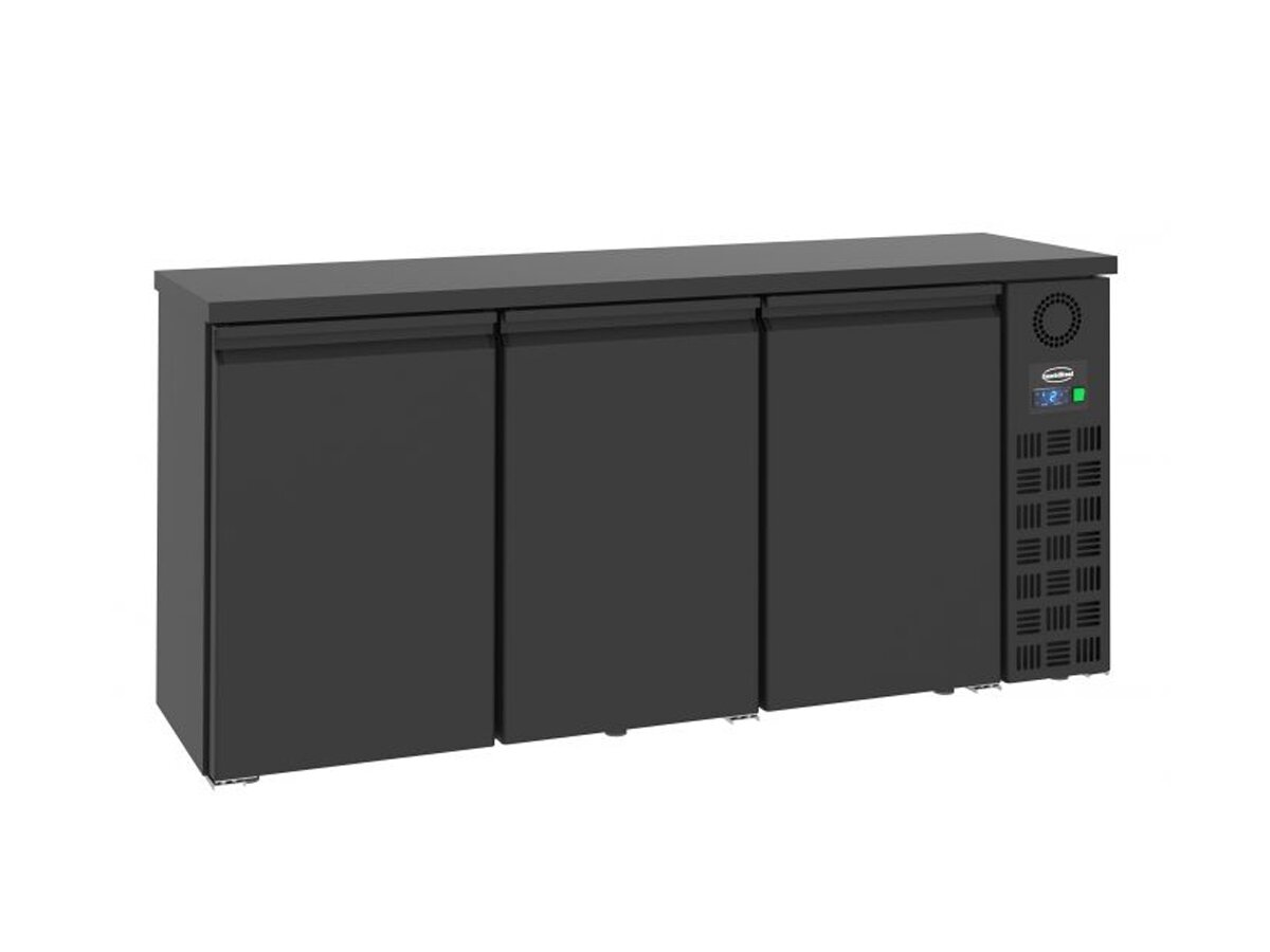 Combisteel Barkühltisch – 500 Liter Fassungsvermögen, Schwarz mit 3 Türen