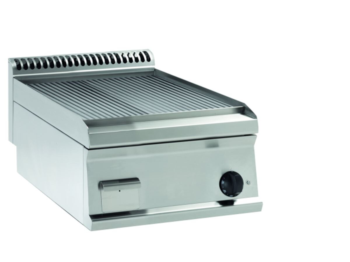 Gastronomie Gasgrillplatte mit gerillter Bratfläche, hartverchromte Grillfläche mit 316 x 566 mm