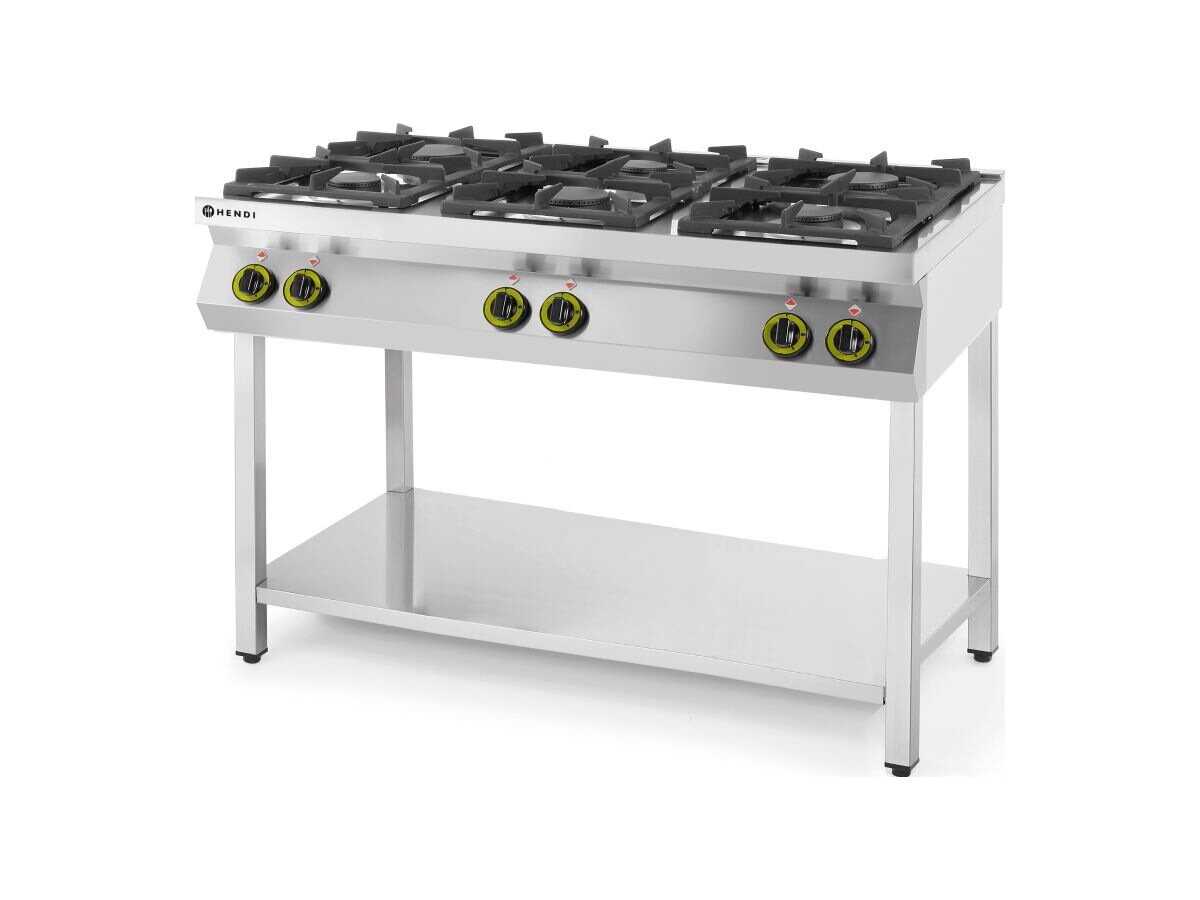 Gaskocher, 6 Brenner, 28,5 kW, mit offenem Unterbau