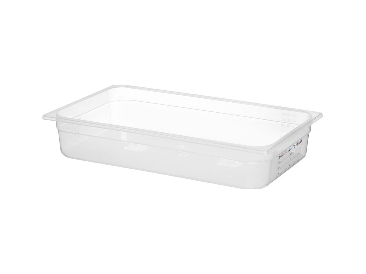 Der Hendi GN 1/1 HACCP-Aufbewahrungsbehälter mit 100 mm Höhe und 12 Litern Nutzinhalt ist optimal für die hygienische Lagerung von Lebensmitteln in professionellen Küchen. Hergestellt aus transparentem, robustem Polypropylen, ist er luftdicht abschließend, stapelbar und spülmaschinengeeignet. Ein verschleißfestes Etikett erleichtert die Rückverfolgung nach HACCP-Richtlinien. Optional sind farbcodierbare Clips und spezielle Stifte erhältlich. Der Behälter ist temperaturbeständig von -40 °C bis +80 °C – ideal für Kühlung, Lagerung und Transport.