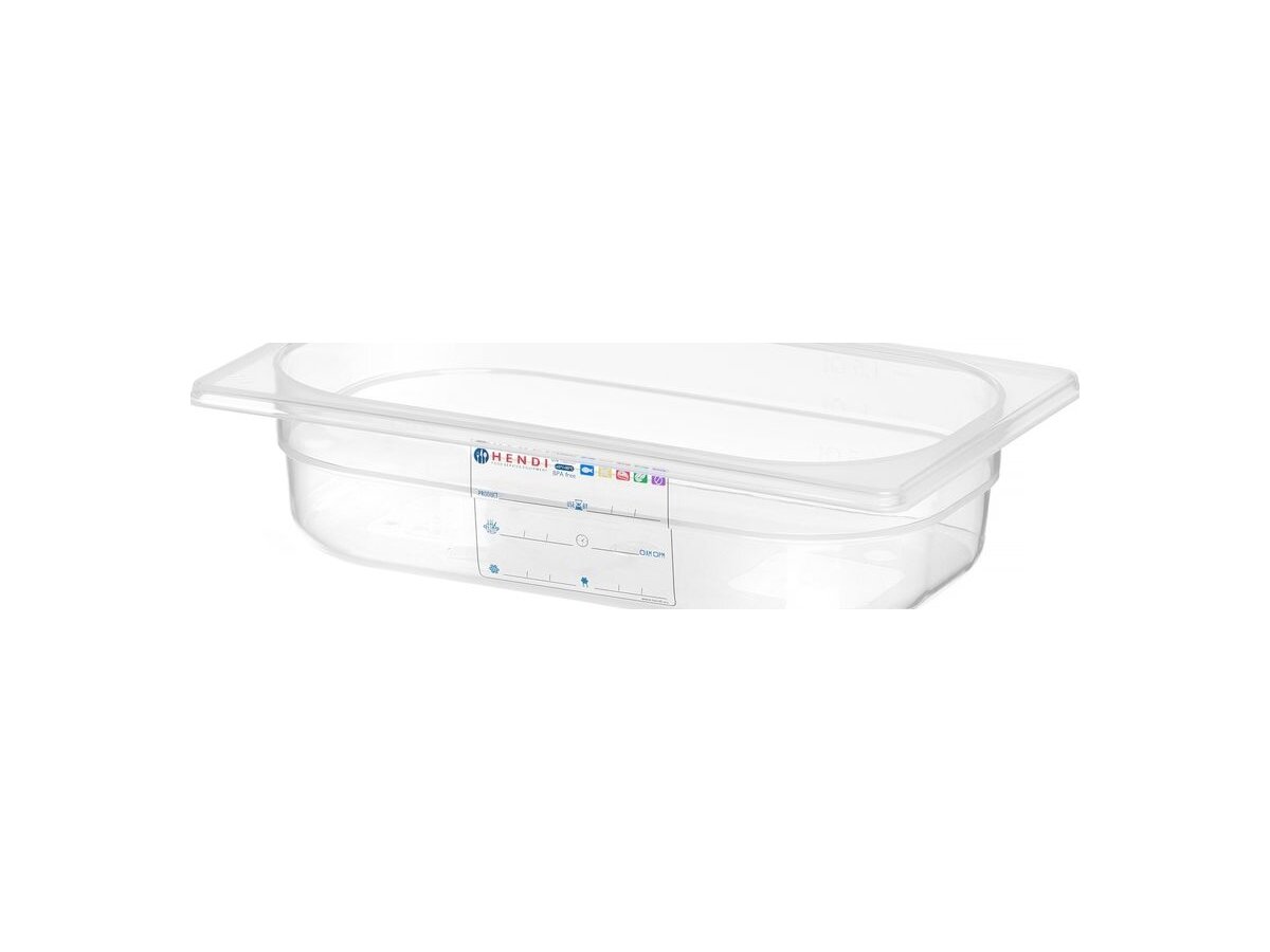 Der HENDI GN-Behälter 1/4 mit 65 mm Tiefe und einem Fassungsvermögen von 1,8 Litern eignet sich ideal für die hygienische Lagerung und Organisation von Lebensmitteln nach HACCP-Vorgaben. Aus transparentem Polypropylen gefertigt, ist der Behälter luftdicht, lebensmittelecht, stapelbar und spülmaschinengeeignet. Er nimmt weder Gerüche noch Aromen auf und ist mit einem verschleißfesten Etikett zur Lagerkontrolle ausgestattet. Deckel und Farbcodierungsclips sind separat erhältlich. Temperaturbeständig von -40 °C bis +80 °C.