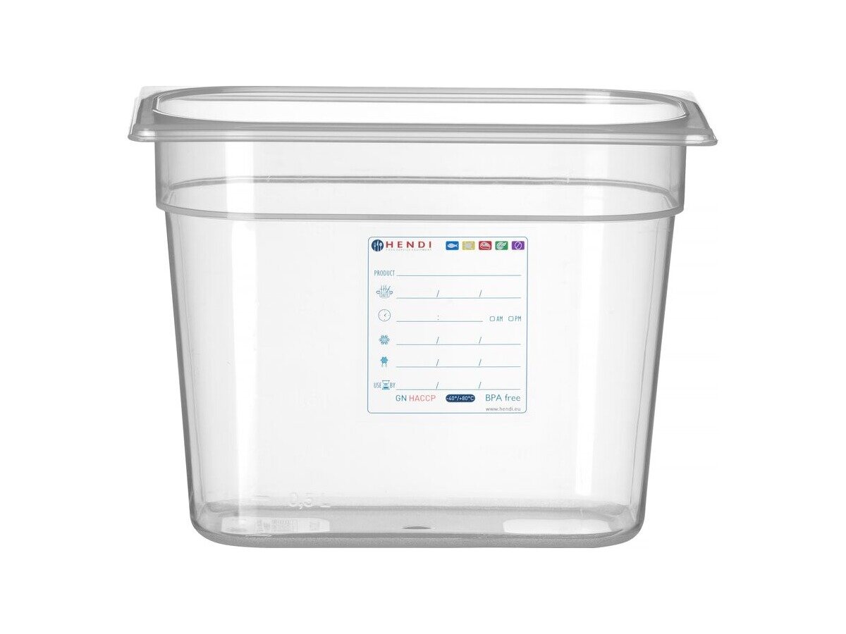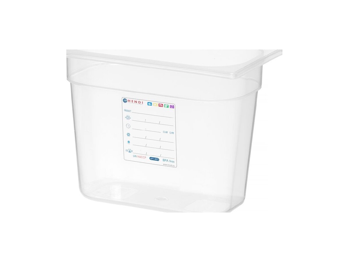Der HENDI GN-Behälter 1/4 mit 200 mm Tiefe ist die ideale Lösung für die lebensmittelsichere Lagerung nach HACCP-Richtlinien. Hergestellt aus transparentem, geruchsneutralem Polypropylen, bietet der Behälter ein Volumen von 5,5 Litern. Er ist stapelbar, spülmaschinengeeignet und absorbiert keine Aromen. Ein integriertes, abriebfestes Etikett ermöglicht die einfache Kontrolle des Lagerungsprozesses. Deckel und Farbcodierungsclips sind separat erhältlich. Temperaturbeständig von -40 °C bis +80 °C – ideal für jede Profi-Küche.
