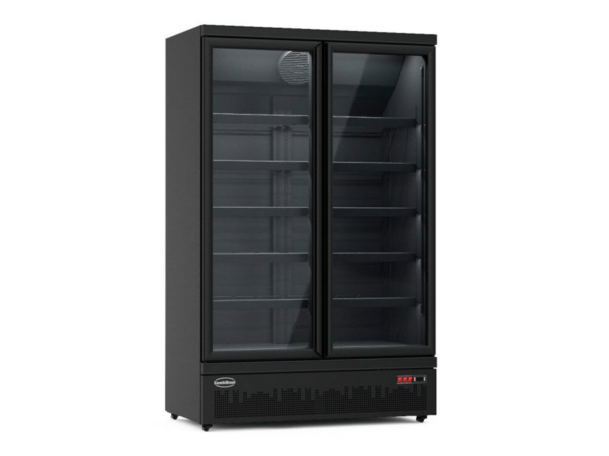 Tiefkühlschrank mit 2 Glastüren, auf Rollen, Inhalt 1000 Liter, Schwarz