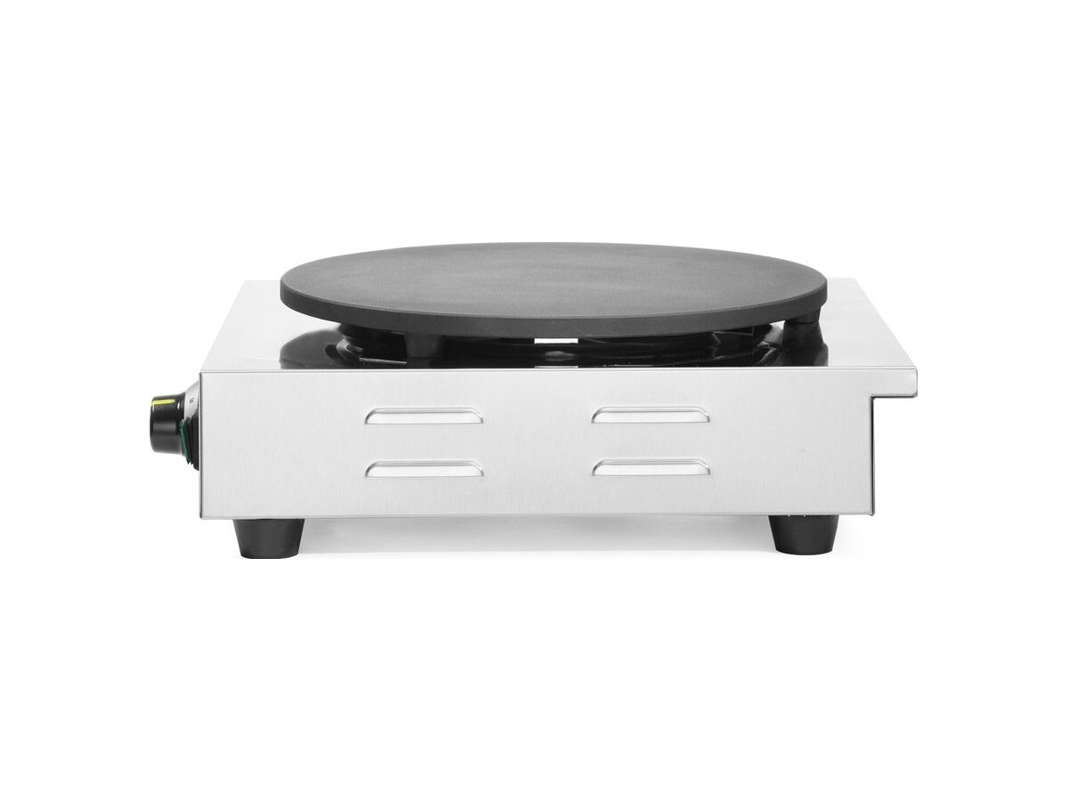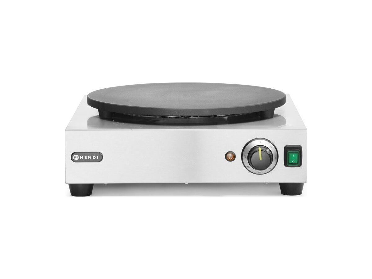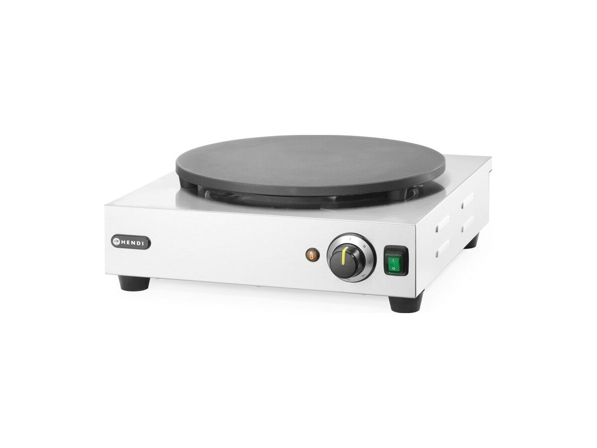 Die HENDI Crêpesplatte ermöglicht perfekte Crêpes mit Ø400 mm. Die Gusseisenplatte mit Keramikbeschichtung sorgt für optimale Wärmeverteilung. Stufenlose Temperaturregelung bis 300 °C, Edelstahlgehäuse, Überhitzungsschutz und Crepesspachtel inklusive machen das Gerät ideal für den professionellen Einsatz.