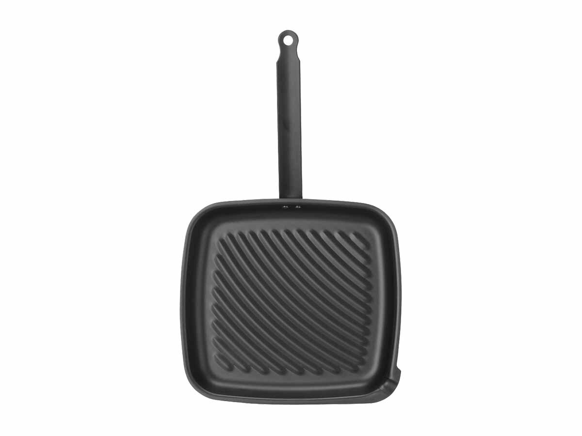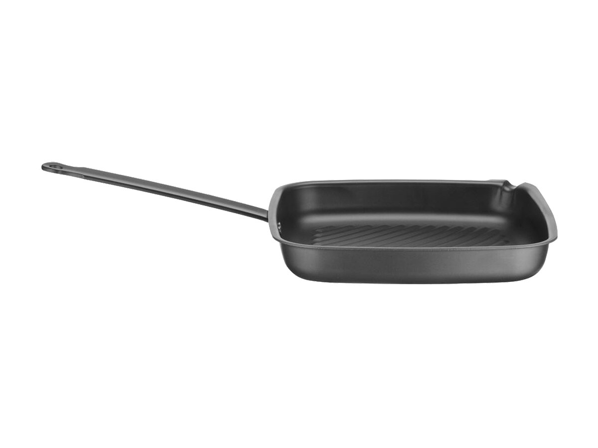 - Design: Quadratische Form mit den Maßen 480 x 282 x 80 mm, gerippte Oberfläche für Grillstreifen