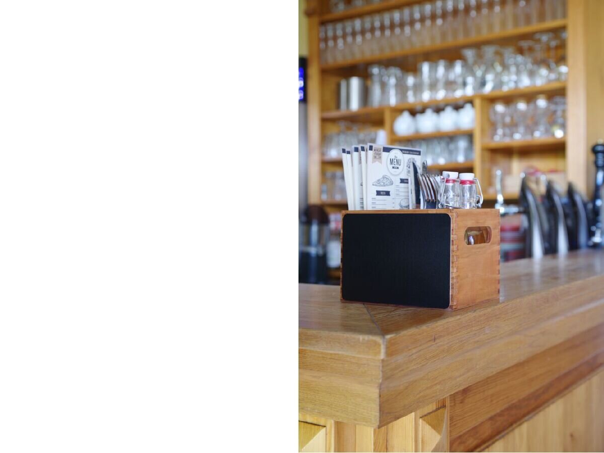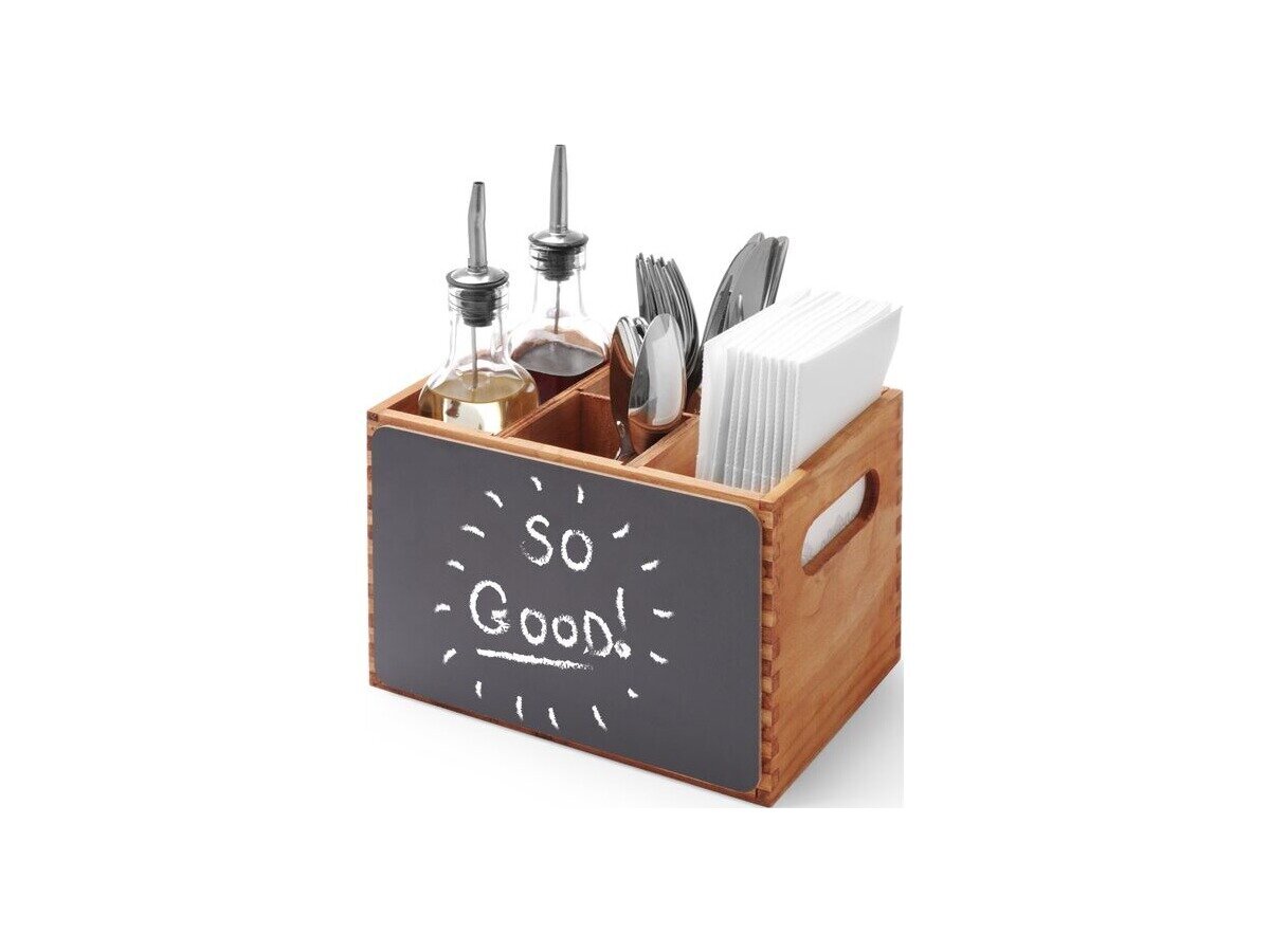 Eleganter Holzkasten mit integrierter Tafel auf beiden Seiten.