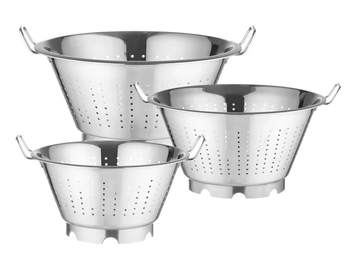 Der Hendi Seiher aus der Profi Line Serie ist aus hochwertigem Edelstahl gefertigt und für den intensiven Einsatz in Gastronomie und Großküche konzipiert. Er ist ideal geeignet zum Abseihen von Nudeln, Gemüse oder Salaten. Der stabile Untersatz sorgt für sicheren Stand, während die beiden genieteten Griffe eine komfortable Handhabung gewährleisten. Die starke Konstruktion macht den Seiher besonders robust und langlebig. Spülmaschinengeeignet und hygienisch zu reinigen.