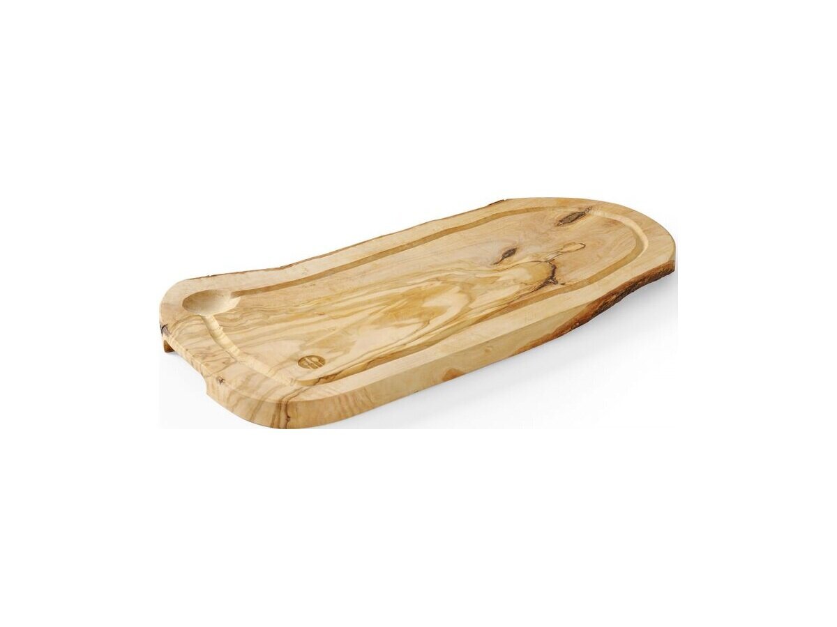 Das Hendi Schneide- und Servierbrett aus Olivenholz vereint Funktionalität und Ästhetik. Hergestellt aus hochwertigem Olivenholz, ist jedes Brett handwerklich gefertigt und besitzt eine einzigartige Maserung, die es zu einem echten Unikat macht. Es eignet sich nicht nur zum Schneiden von Zutaten, sondern auch zum stilvollen Servieren und Präsentieren von Speisen wie Käseplatten. Die integrierten Griffe ermöglichen ein bequemes Tragen, während die Rille auf der Oberfläche Krümel und Flüssigkeiten auffängt, um die Arbeitsfläche sauber zu halten. Dieses Brett ist nicht spülmaschinengeeignet, aber lebensmittelecht und langlebig.