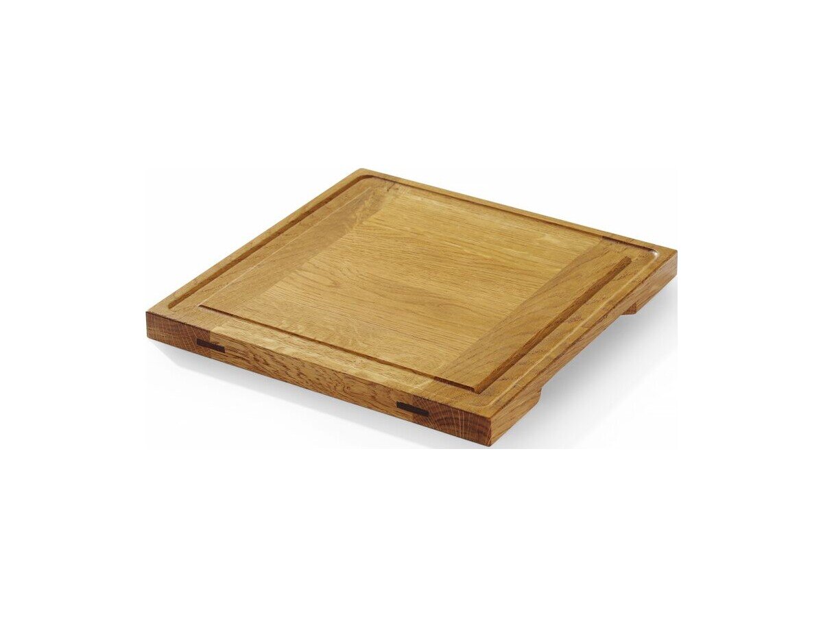 Hendi Servierbrett aus Eichenholz, mit Saftrinne, BTH 270 x 270 x 20 mm
