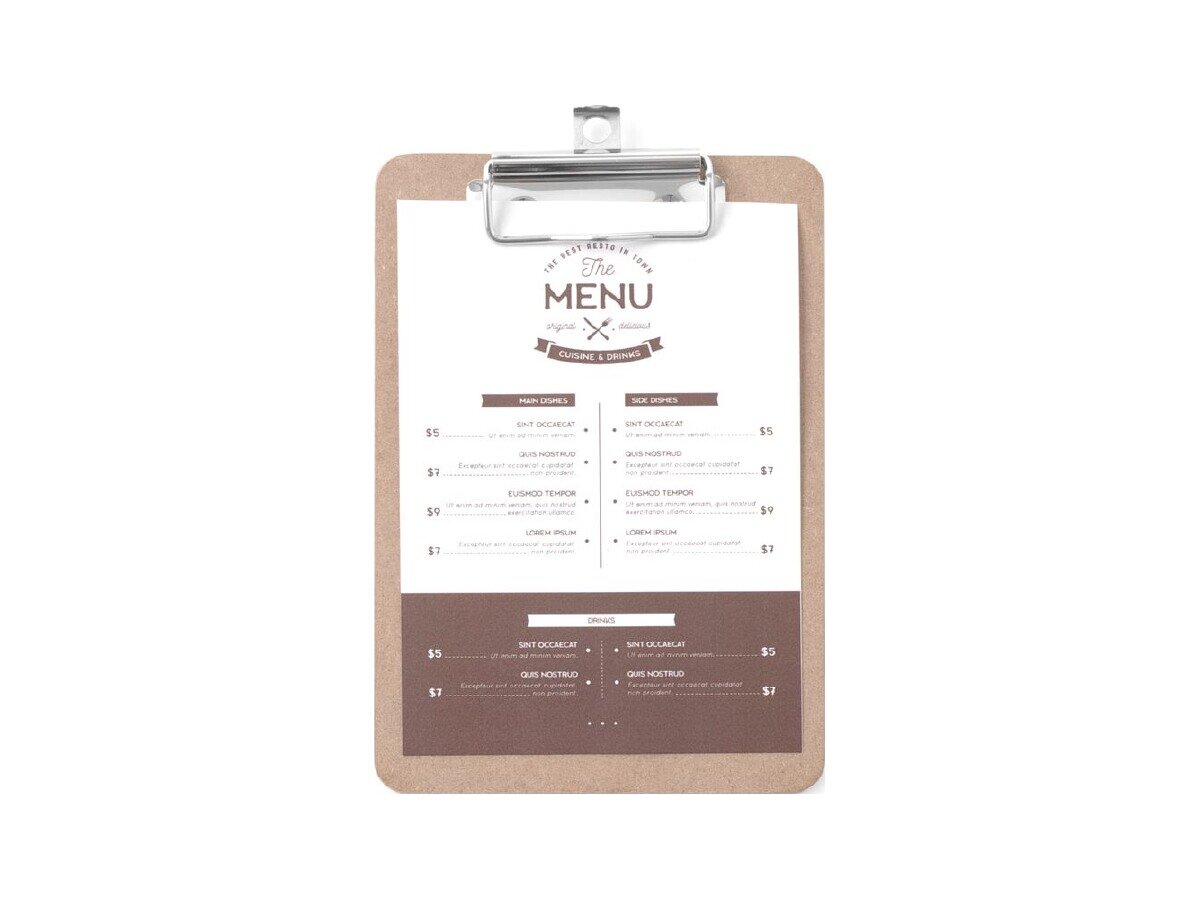 Kompaktes Klemmbrett für Speisekarten aus hochwertigem MDF.