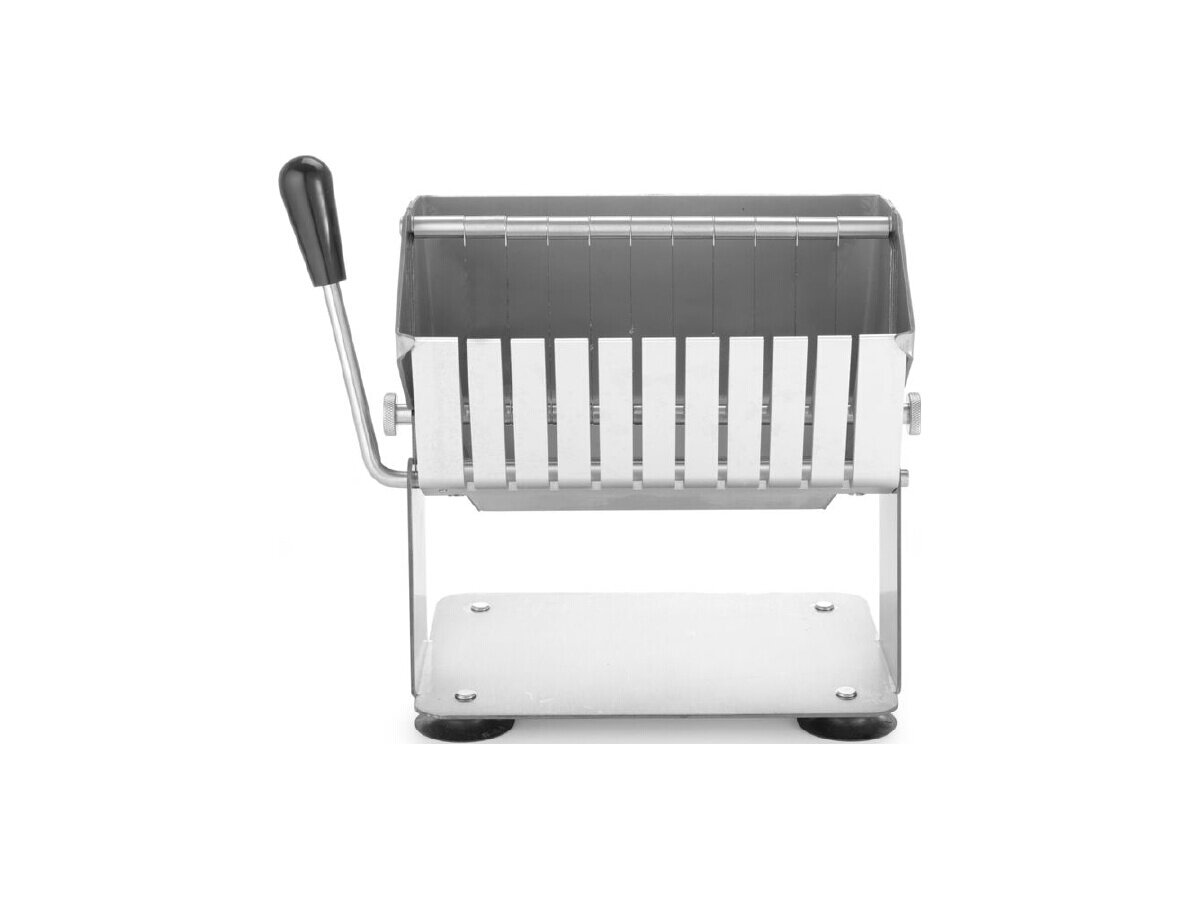 Dank der hochwertigen gezahnten Klingen ist ein müheloses Schneiden garantiert. Starke Saugnäpfe an der Unterseite sorgen für sicheren Halt während des Gebrauchs. Der Wurstschneider ist zudem einfach zu reinigen – ideal für den täglichen Einsatz in der Profiküche.