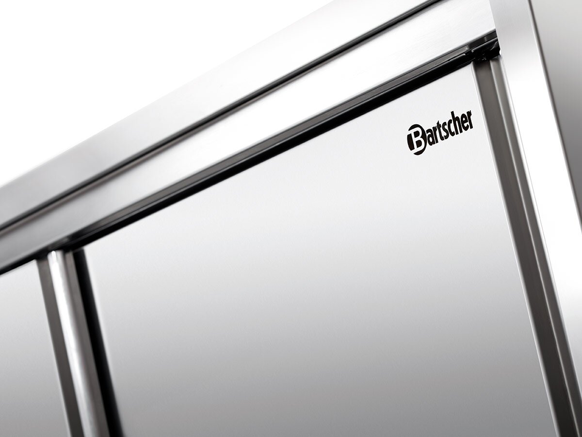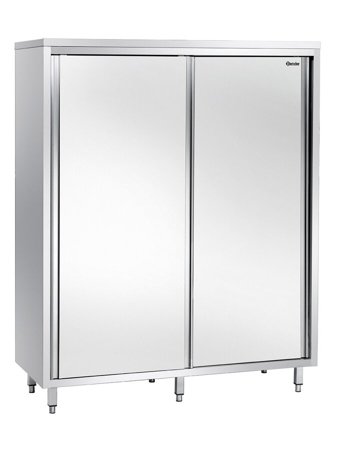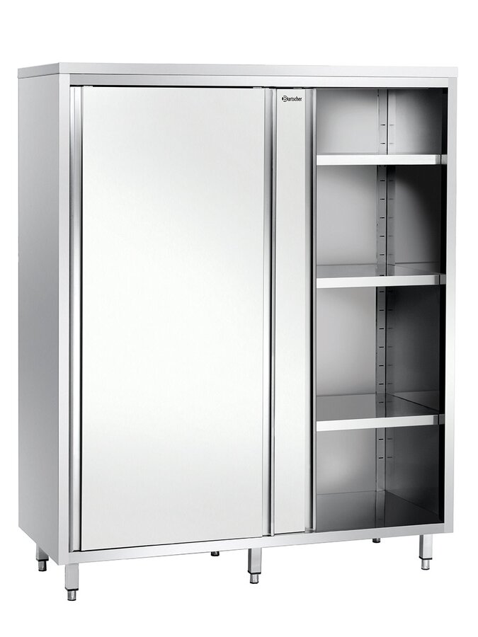 Gastronomie Hochschrank aus Edelstahl mit 2 Schiebetüren und 3 Zwischenböden