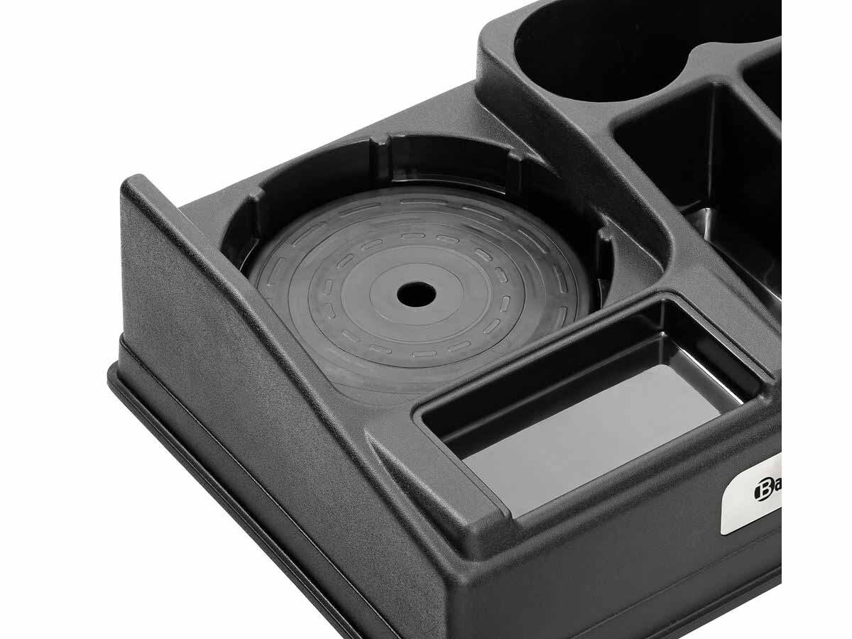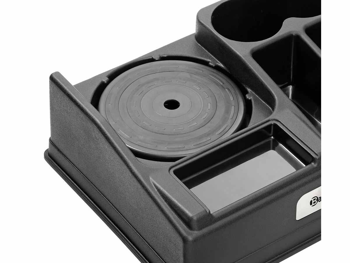 - Eigenschaften: 5 Staufächer für Becher, Löffel/Rührstäbchen, Milch und Zucker, Kunststoffeinsatz in 3 Höhen verstellbar