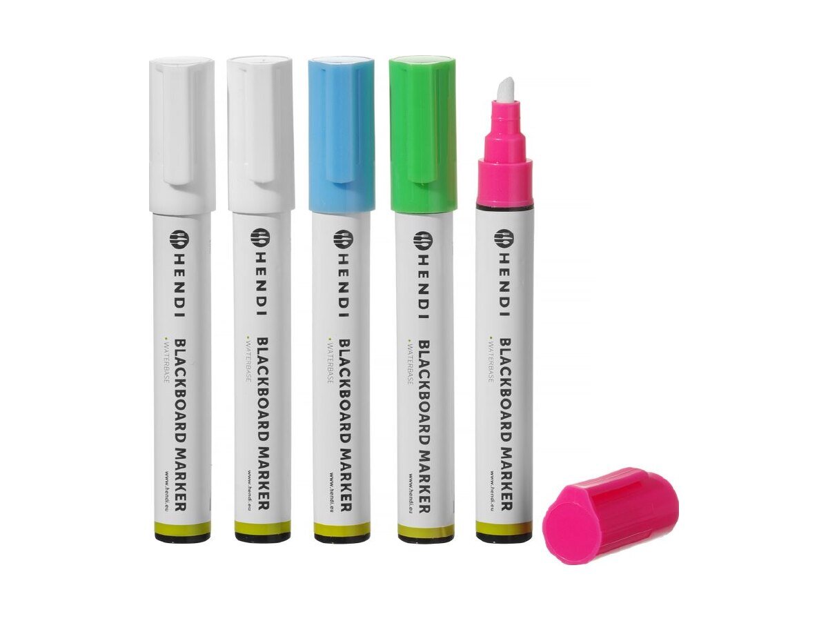 Kreidemarker Hendi, Strichstärke 2 bis 6 mm, 5 Stück, 1x pink, 1x grün, 1x blau, 2x weiß
