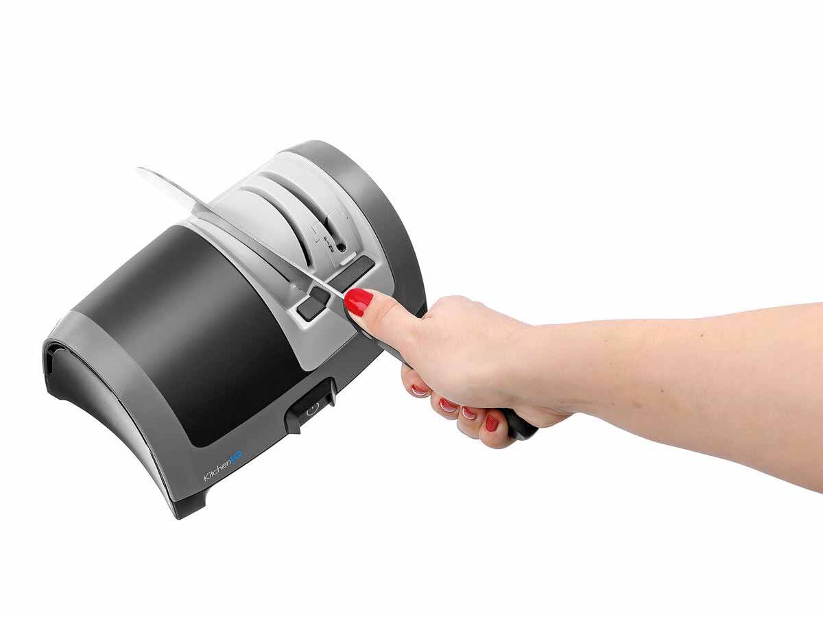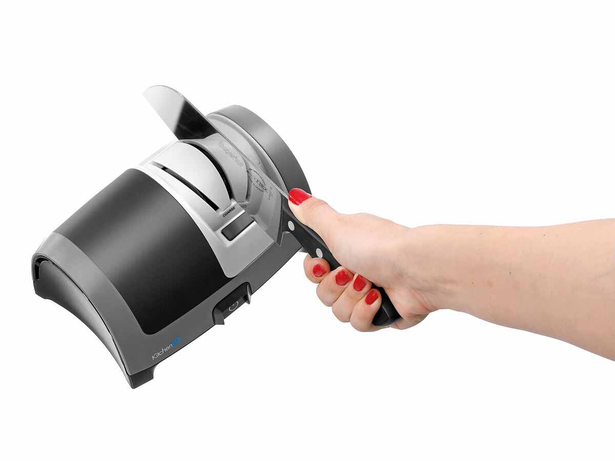 Materialschonend und gründlich. Ob glatte und geschwungene Klingen oder Messer mit Wellenschliff – Der Messerschärfer geht beim Schärfen und Entgraten keine Kompromisse ein.